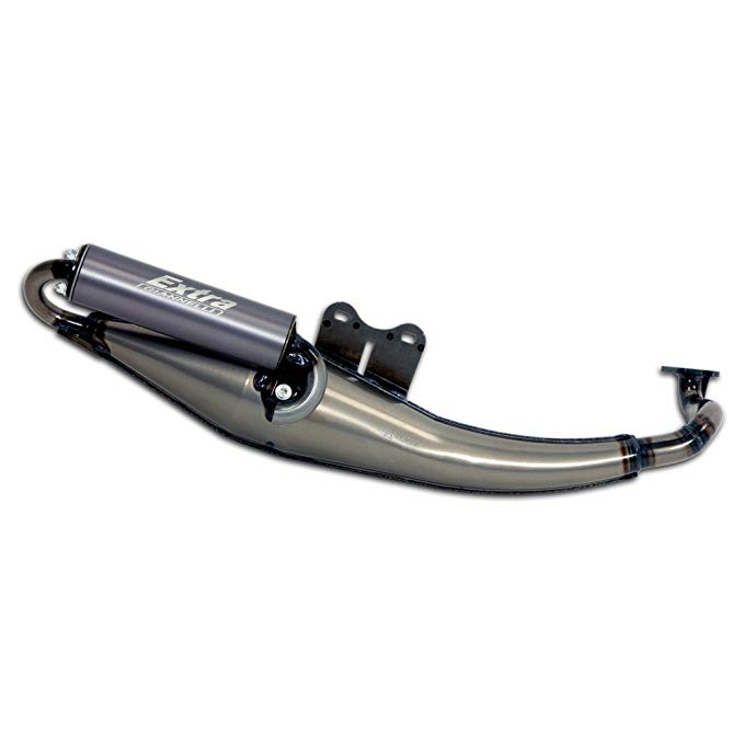The Extra V2 exhaust represents the evolution of scooter exhausts: the muffler is hand-welded and the inner perforated cone ensures optimal power, performance development. The silencer is made of aluminium and anodised in a titanium look with a laser-etched logo. The outlet pipe is clear lacquered. The Extra V2 exhaust offers excellent value for money.| Manufacturer | Model | Type | Model Year | Note | Homologation | ccm |