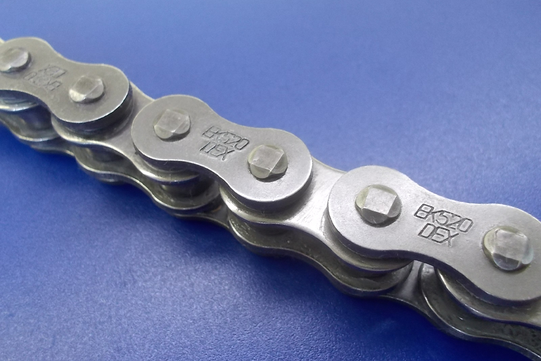 Cost-effective Quadra-X-Ring chain for motorcycles, featuring high tensile strength and low-friction properties:- 520 DEX for on-road and off-road motorcycles up to 500 cc
