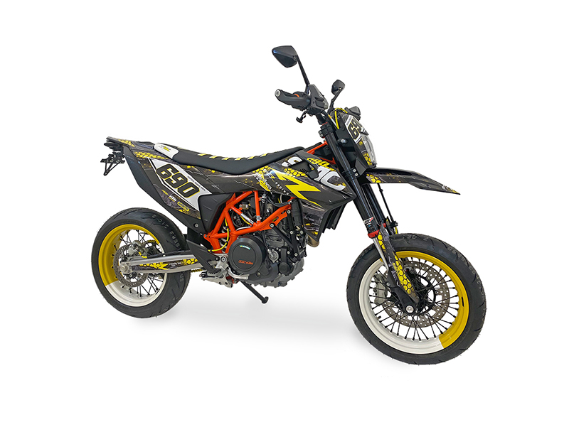 The short licence plate holder from alpha Technik for the KTM 690 SMC R (type KTM690LC4) impresses with its sporty design, excellent functionality, and easy installation (detailed mounting instruct...