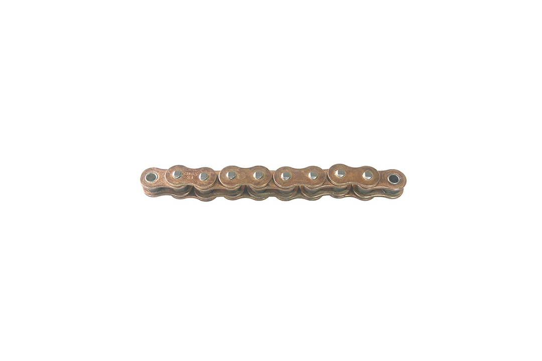 Ultimate racing chain with Teflon seal, specifically designed for motocross and enduro bikes in off-road sports. Offers the lowest possible frictional resistance for optimal power transmission. Lightweight Teflon-washers prevent the ingress of dirt and moisture to increase the service life of the chain. Extra strong design with high tensile strength (3900kg).