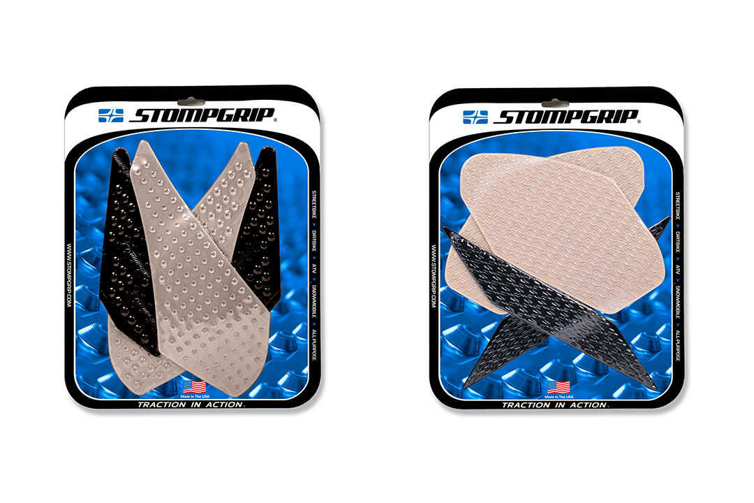 Stompgrip - more feel for your bike through increased leg grip.The new Stompgrip Traction Pads provide the rider with improved grip on the machine in demanding riding situations, such as heavy braking or cornering, significantly increasing body stability. The pads are available as vehicle-specific kits or in a universal design in various colours: clear, black, and hybrid (black & clear).