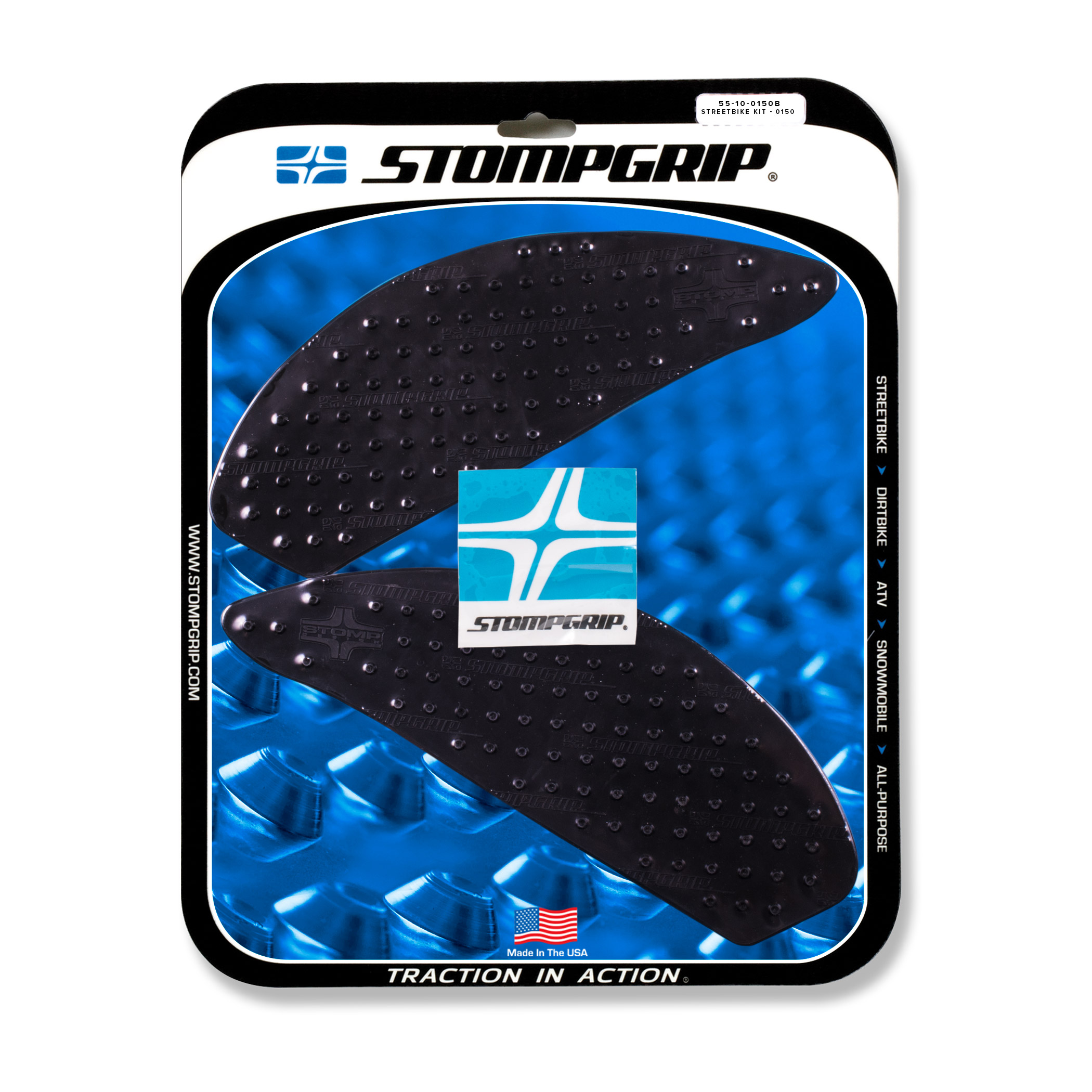With Stompgrip fuel tank pads for road-legal motorcycles and for racing, you will have more grip and control with your legs when accelerating, braken, and leaning. The best-known and most popular grip profile: VOLCANO. This classic surface offers the rider excellent grip and control in every (leaning) position. Anyone looking for even more grip at the limit or in extreme weather conditions will be impressed by the ultimate SUPER VOLCANO design. If you prefer more understatement and vintage style, the ICON DESIGN is what you're looking for. It is more comfortable and softer, yet still offers approx. 75% grip compared to the classic VOLCANO design. Stompgrip Traction Pads are individually tailored for each motorcycle. If no suitable Stompgrip pad is available, use the Stompgrip universal pads or cut them to size as needed. The pads are available in black or clear.